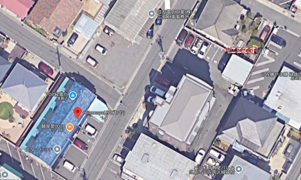 グーグルマップとは駐車場の向きが逆になっていますね。