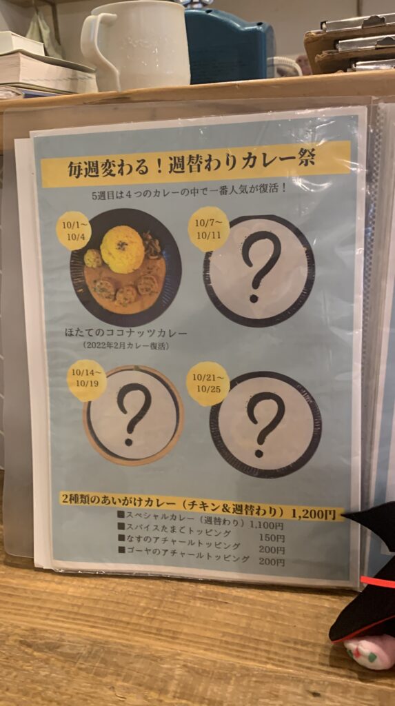1週目の週替わりカレーは「ほたてのココナッツカレー」
