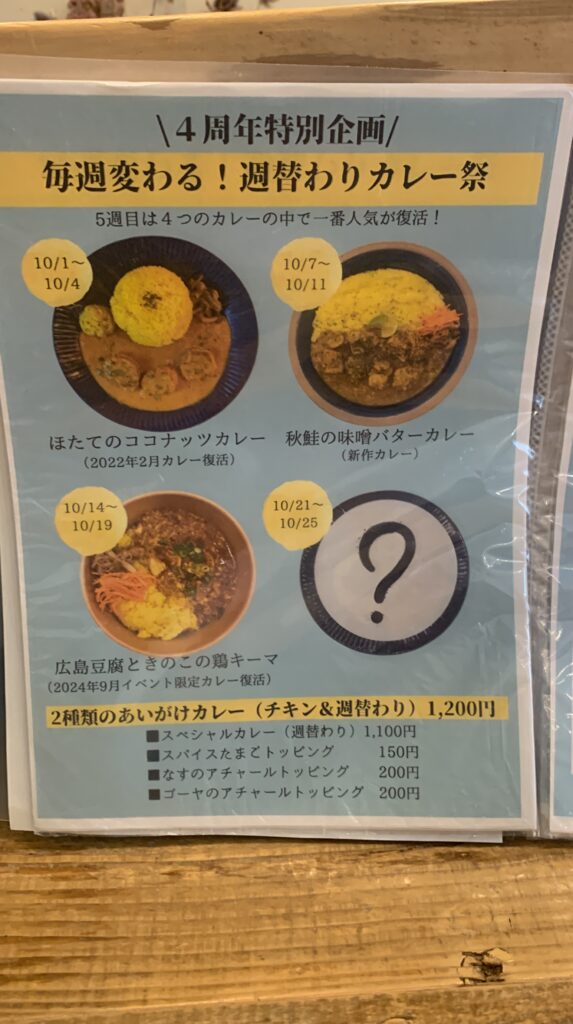 3週目の週替わりカレーは「広島豆腐ときのこの鶏キーマ」(イベント復刻版)