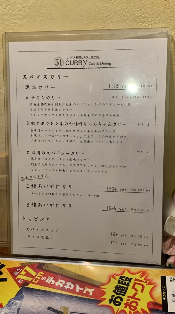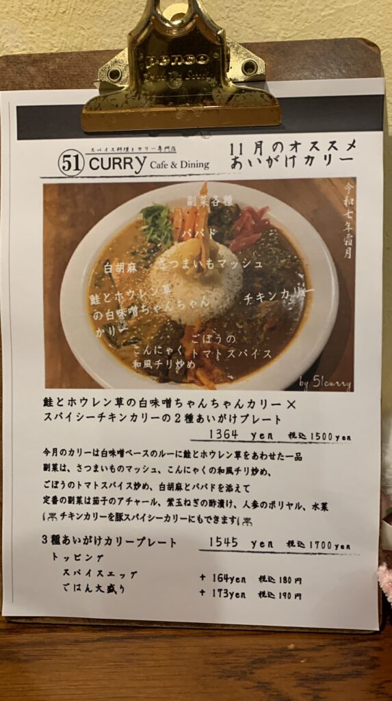 【51カレー】西広島駅近くの創作スパイスカレー専門店。月替わりのメニューにインパクト絶大。24年12月は和風カリー – ぬいと食の探訪ブログ