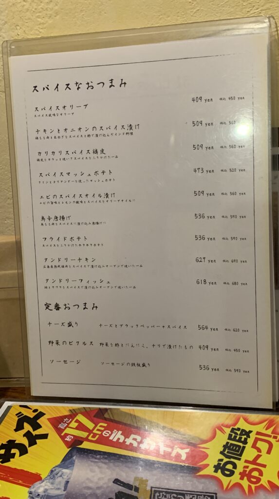 さすが、スパイスを売りにしているだけあって、ほんとにスパイシーでおいしい鶏皮でした。