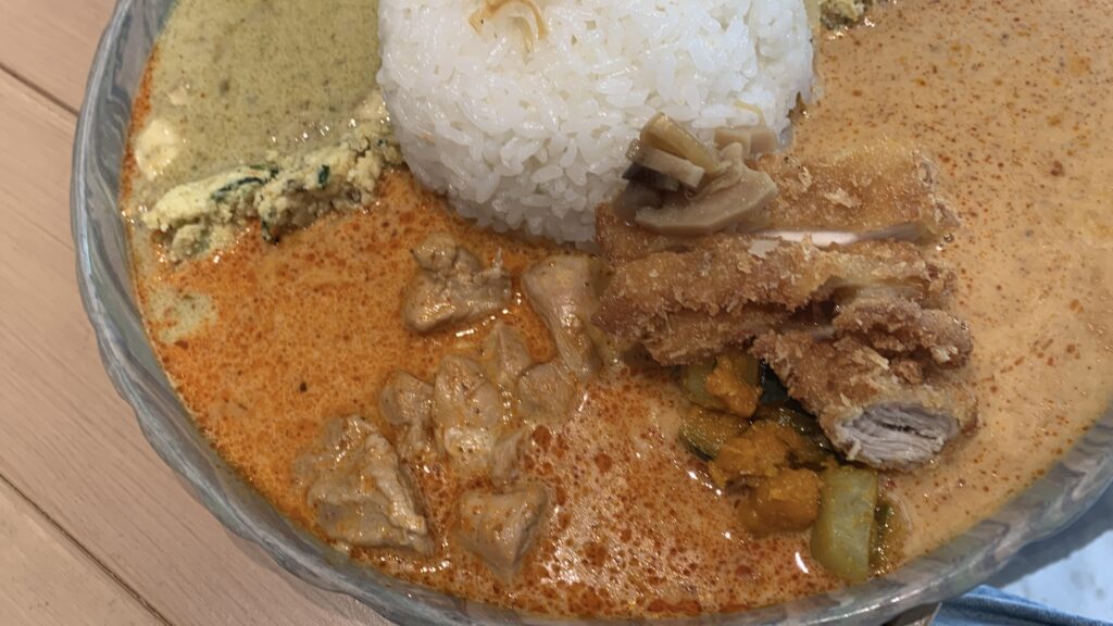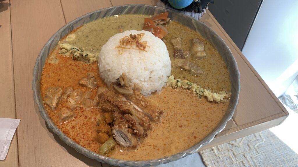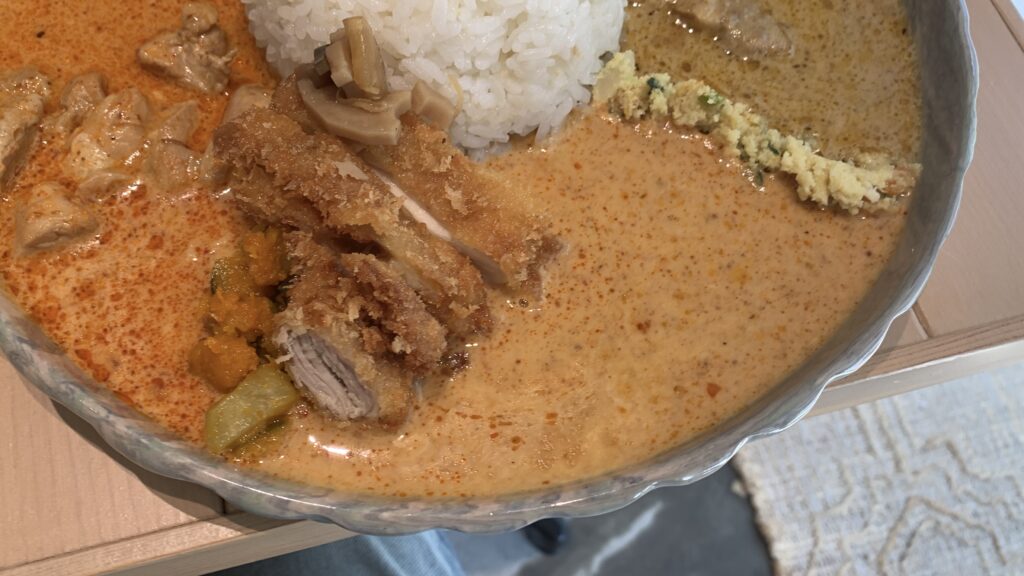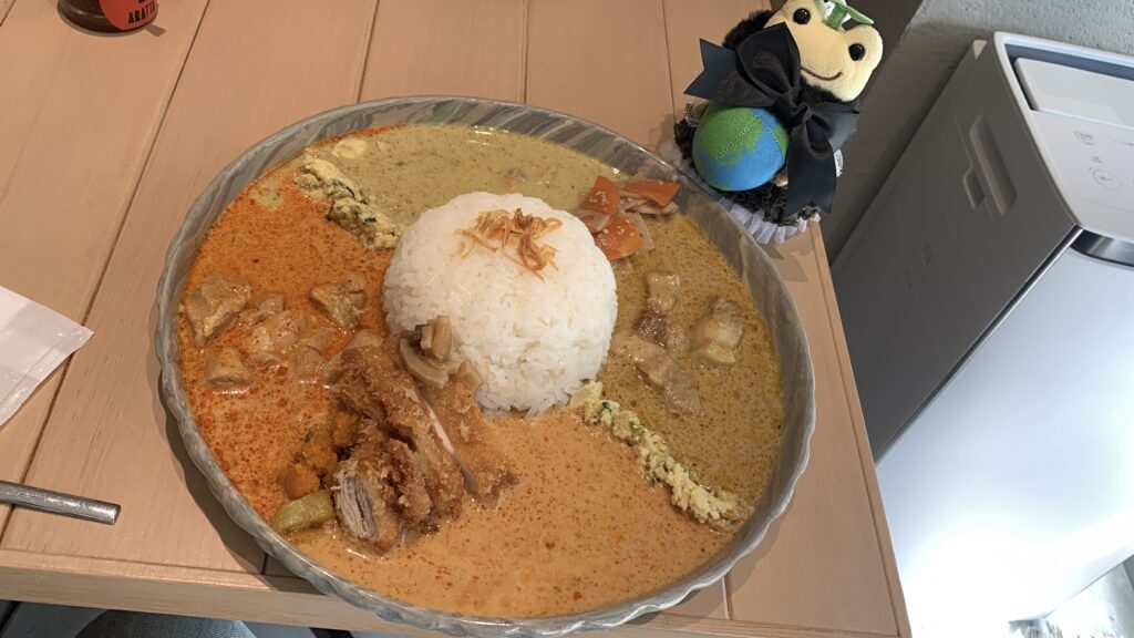 ヌシはノールックで4種あいがけ+ライス大盛+ルー大盛りにしてたケロ🐸