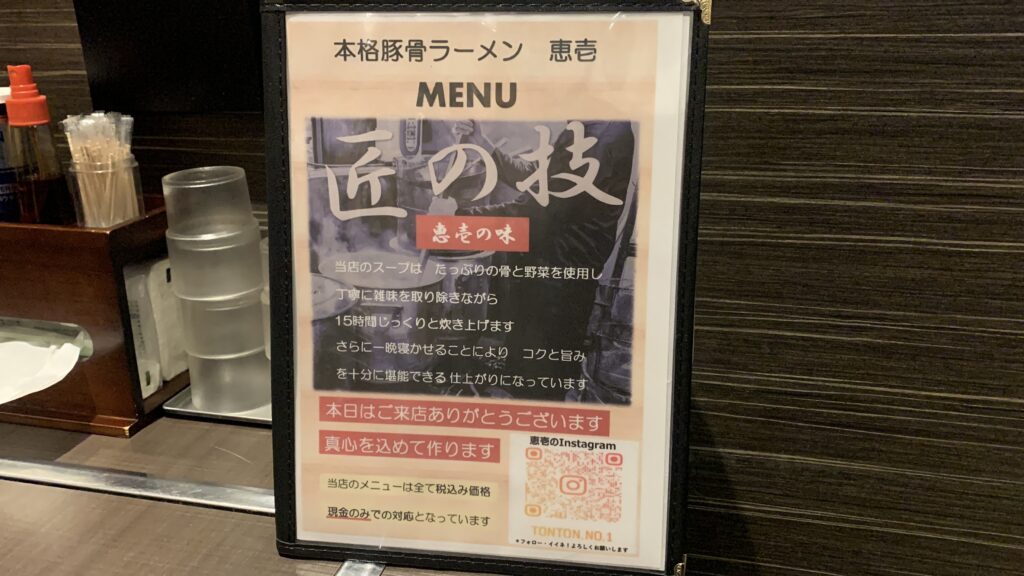 今回はそんなラーメン恵壱を、じっくり実食レビューしていきます。