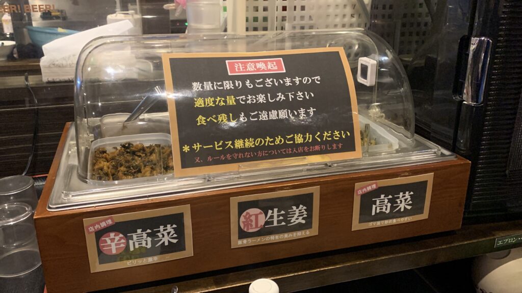 辛子高菜や紅ショウガなどはサービス品です。