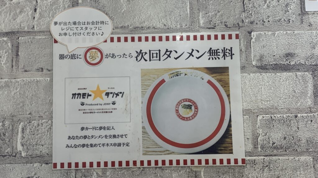 ”夢”の文字があれば、次回のタンメン無料!