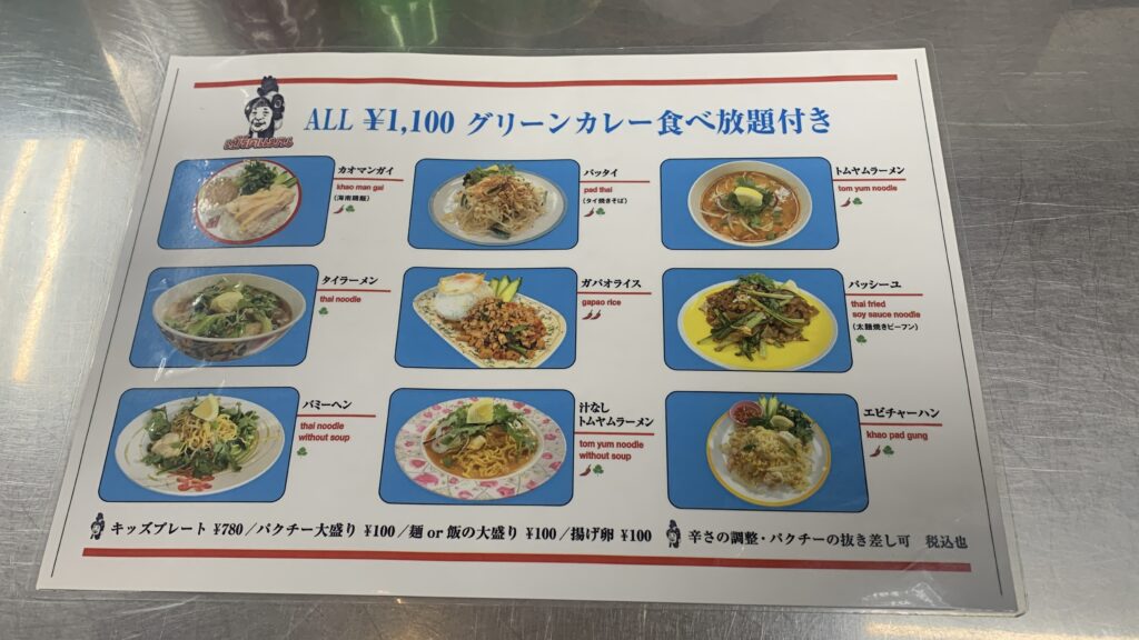 グリーンカレーまたはレッドカレーの食べ放題が付く、満足度の高いスタイルでも知られています。