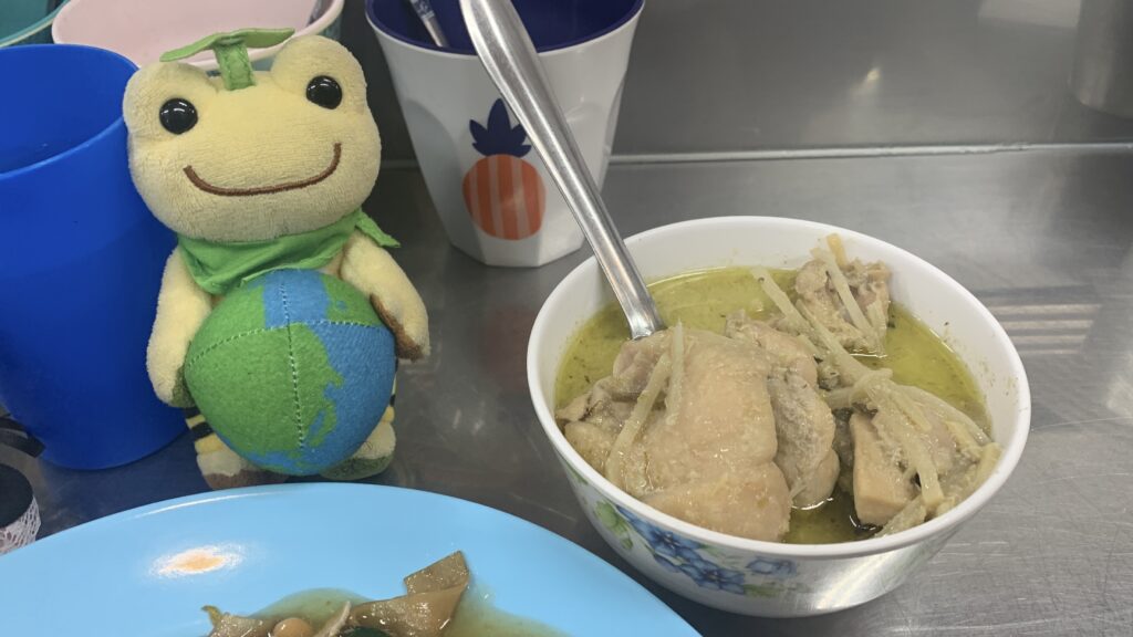 大きな鶏肉、野菜がいっぱい入ってるグリーンカレー