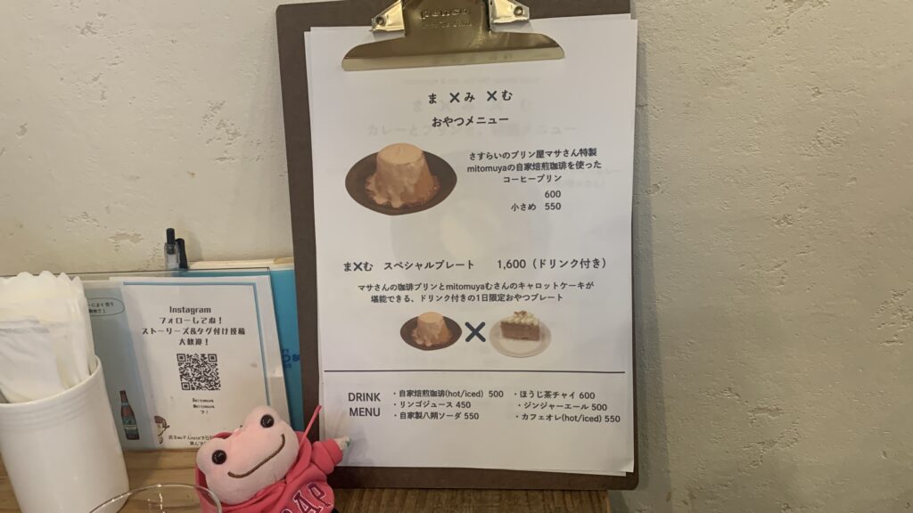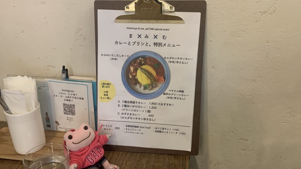 今回のイベントは”ま×み×む”。 カレーとプリンと。特別メニュー