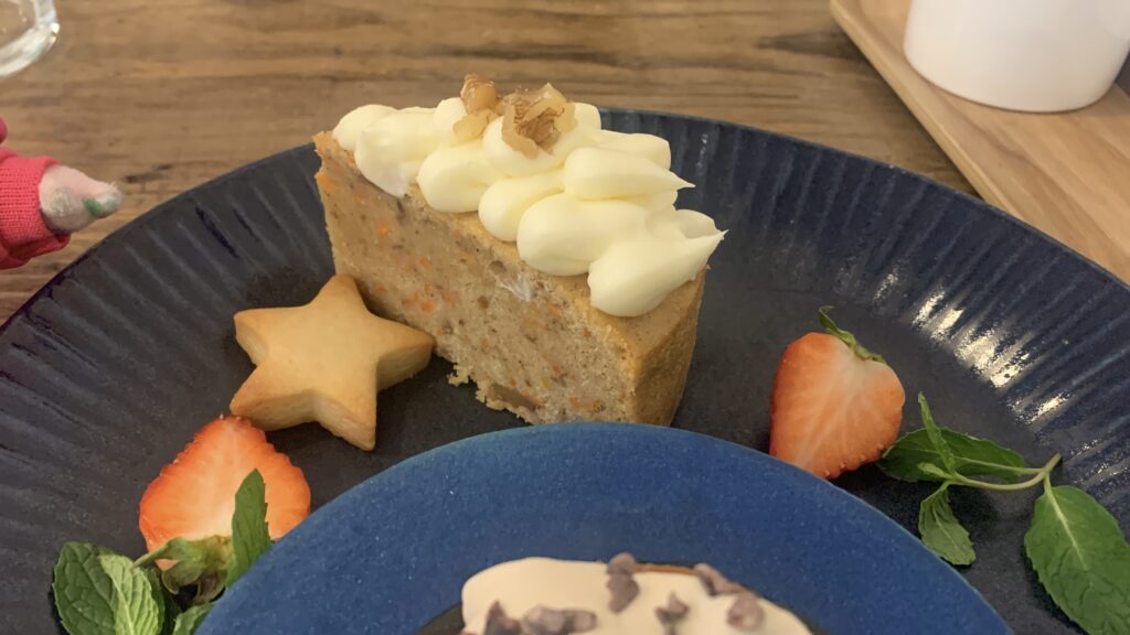 むさんのキャロットケーキ付きのスペシャルプレートを注文したケロ🐸✨