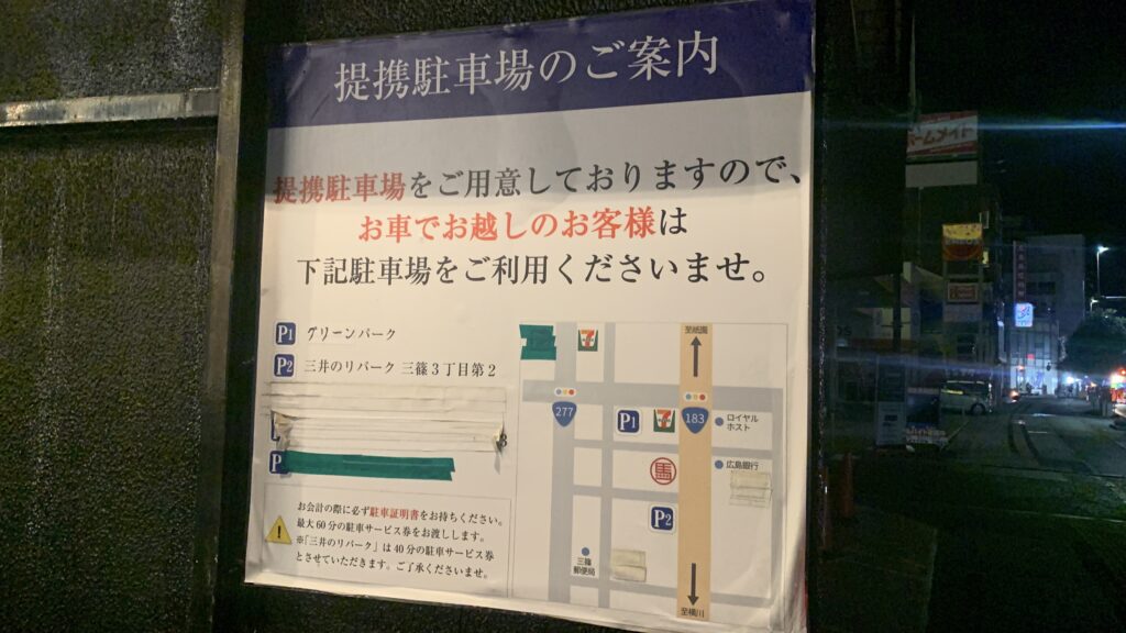 付近に提携駐車場がありますよ(重要)