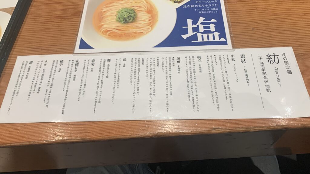 25周年の冬の限定麺「紡」 期間限定麺