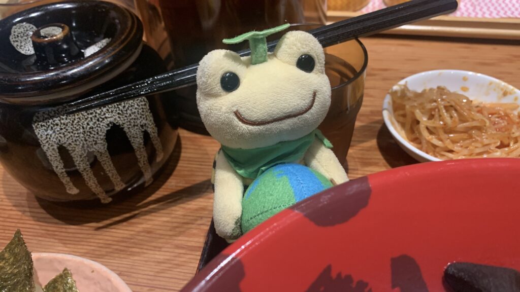 「ぬいと食の探訪ブログ」らしく かえるのピクルスと一緒に実食レビューしていきます。