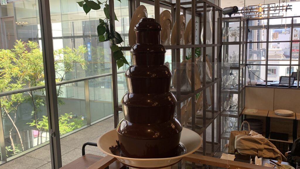 店内の一角にそびえ立つ、チョコレートファウンテン。