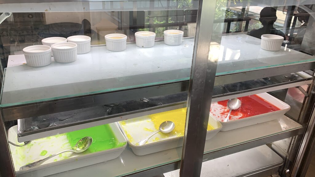 さらに冷蔵ケースには、カラフルなゼリー(赤・黄・緑の3色!)、プリン、杏仁豆腐が並んでいます。