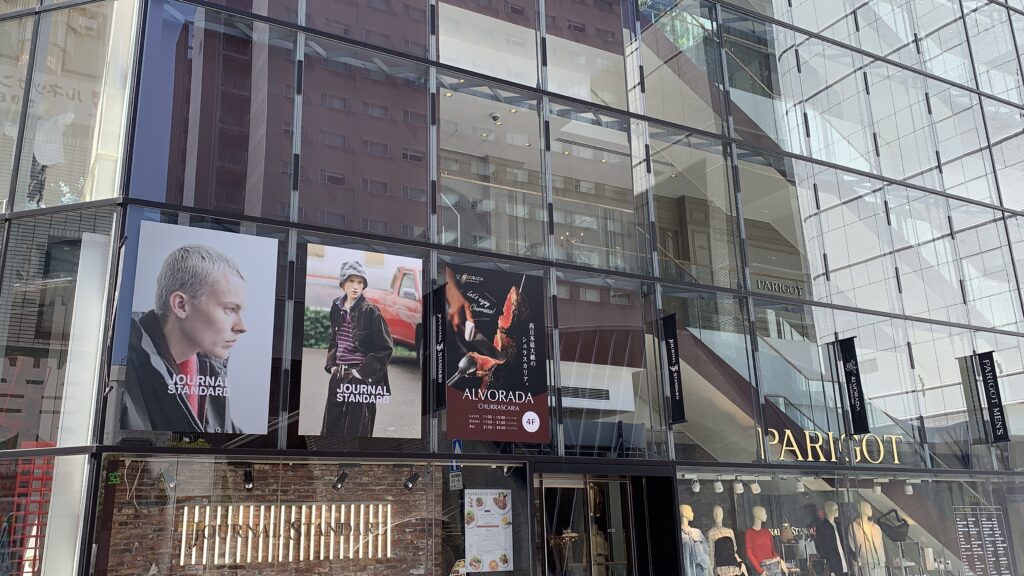 「アクセ広島」のビル正面には大きなALVORADAの広告看板が出ていて、通りから見てもすぐわかりました。
